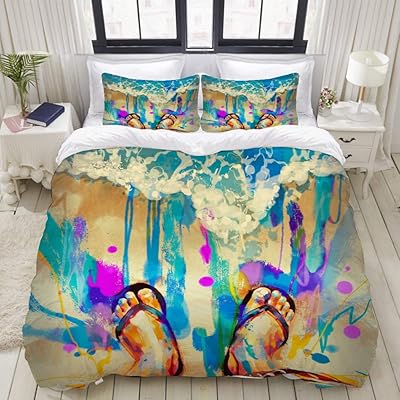 Buy Mokale Duvet Cover King Size 104 X88 Inches Painting Colorful Feet Flipflops On Sandy Soft Microfiber Lightweight Decorative Beddding Set For All Season With 2 Pillow Shams Online At Lowest